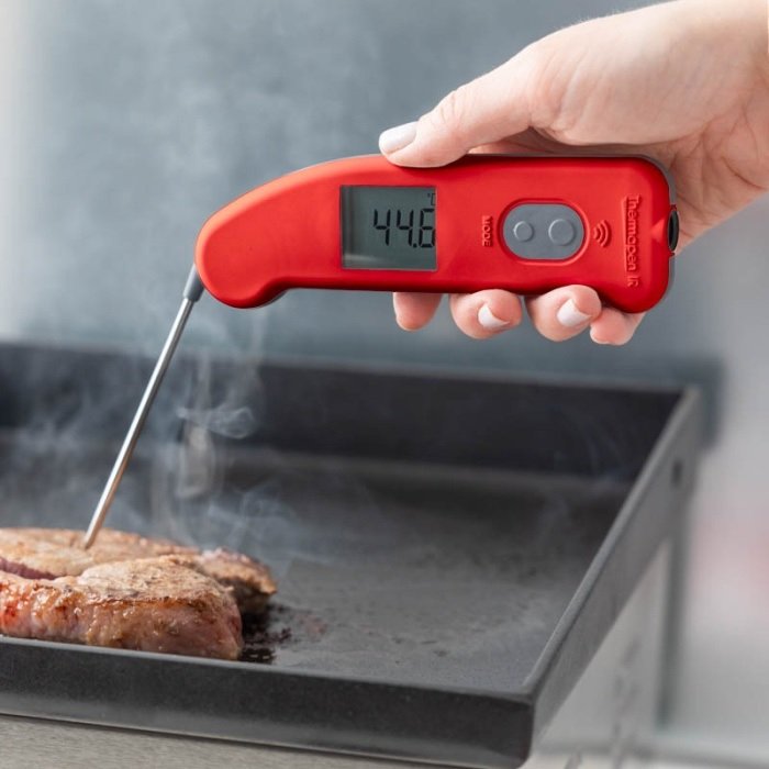 Housed in a robust ABS case containing ‘Biomaster’ additive which reduces bacterial growth, the Thermapen IR incorporates a motion sensing sleep mode (penetration probe only) which automatically turns the instrument on/off when set down or picked up, maximising battery life.